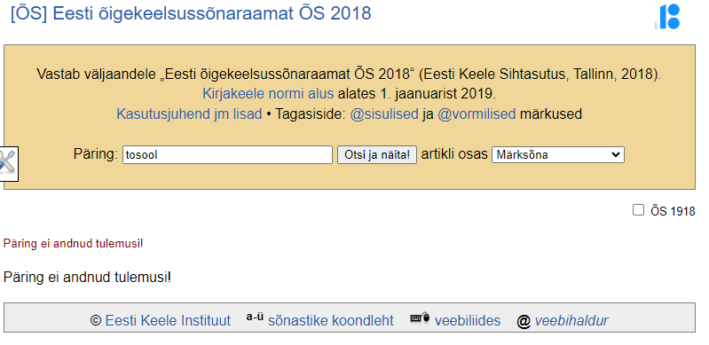 jussike kirjutas: 02 Mär 2024, 18:26 Sihukest sõna nagu tosool pole ametlikult eesti keeles olemas, see on vene keelsest dosol tuletatud värdsõna.